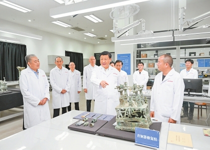 ④7月26日下午,习近平在位于德阳市广汉市的三星堆博物馆文物保护与修复馆,同现场工作人员亲切交流。新华社发