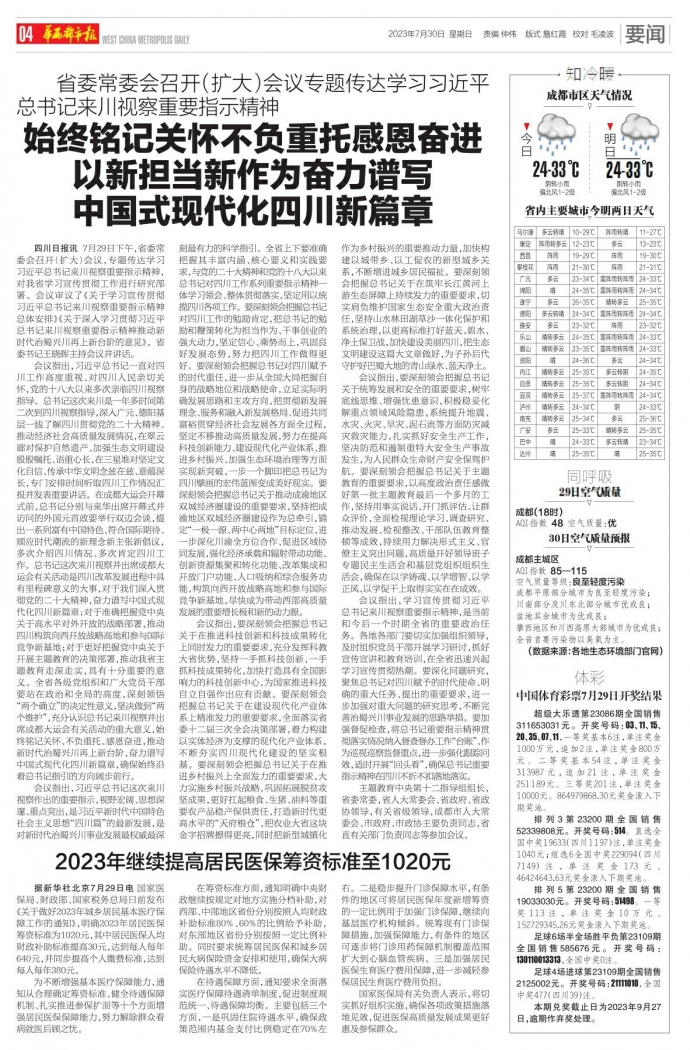 据新华社北京7月29日电 国家医保局、财政部、国家税务总局日前发布《关于做好2023年城乡居民基本医疗保障工作的通知》,明确2023年居民医保筹资标准为1020元,其中居民医保人均财政补助标准提高30元,达到每人每年640元,并同步提高个人缴费标准,达到每人每年380元。