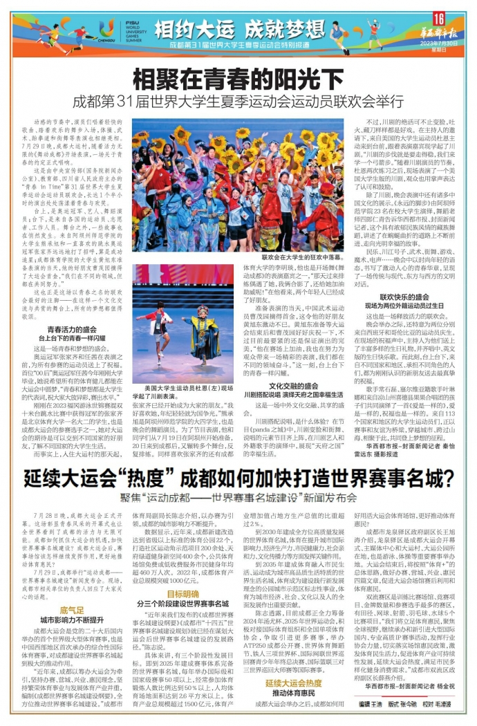 成都第31届世界大学生夏季运动会运动员联欢会举行