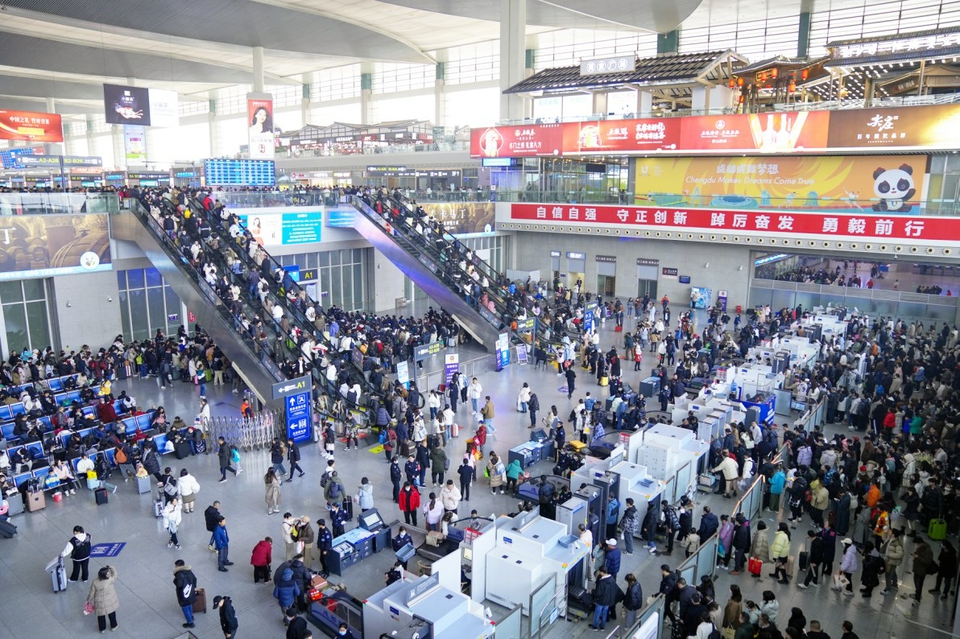元旦假期成都东站候车大厅人流如织。铁路成都车站供图