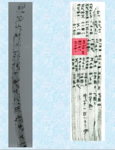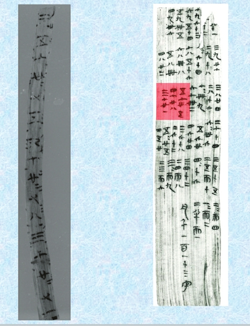 秦家咀战国楚简《九九术》(左)与里耶秦简《九九表》(右)对比图。图据荆州博物馆