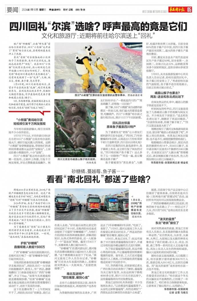 广西的砂糖橘和沃柑已经送到,桂林的柚子也在路上了……相信过不了几天,四川的“回礼”也将出现在东北老乡眼前。