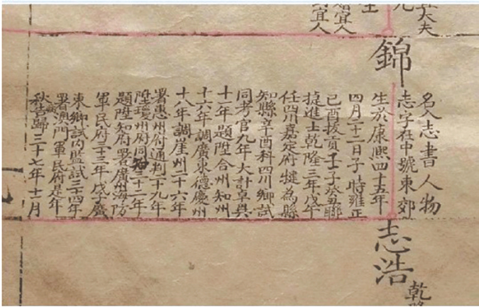 后来,宋锦一直在广东任官。对于宋锦在广东任官的经历,道光九年版《武陟县志》有简单的记载,而《宋氏族谱》上则有更加详细的记载。