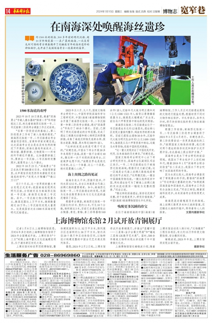 据悉,2024年2月2日起,上博东馆将试开放青铜展厅,并推出“星耀中国——三星堆·金沙古蜀文明展”和“邂逅三星堆12K数字艺术展”。届时,500余件精美文物将向观众讲述数千年中国青铜文化史。