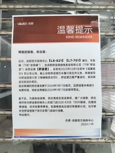 这场“跑路”并不突然,早在去年年底,成都IFS、悠方等就对舒适堡顾客发出了“温馨提示”,称舒适堡已出现租赁合同违约情况,提醒大众谨慎办卡。告示显示,舒适堡严重拖欠租金、物业费,金额已高达数百万元。即使法院介入调解,舒适堡也未执行,故停止了相关服务。