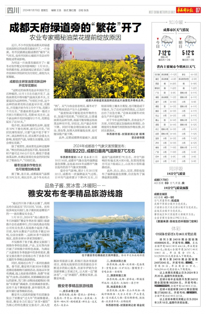为何这一片油菜花提前开了?暖冬对农作物又有何影响呢?1月18日,华西都市报、封面新闻记者采访了成都市农林科学院研究员付绍红,请他为大家揭秘。