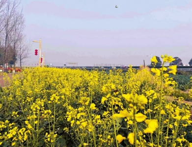 成都天府绿道双流段附近的这片油菜花开得有点早。