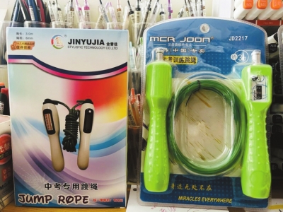“中考跳绳和普通跳绳的区别我也不懂,反正中学要求用这种,我们就去批发这种。一根零售价110元(带计数功能)。”多名店主坦露,价格这么贵,只有中学生才买,他们也不敢多批发,多了怕卖不掉。
