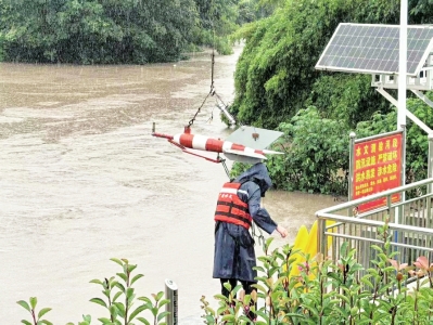 9月16日至24日,广安市遭遇持续强降雨,广安岳池水文测报中心工作人员在九龙水文站安装走航式ADCP(声学多普勒流速剖面仪)。 图据广安水文中心