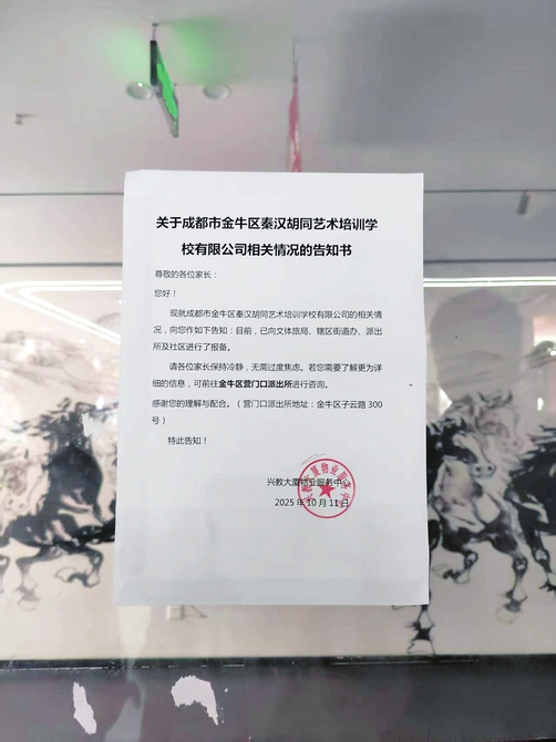 记者了解到,事情发生后,涉事家长们曾于10月9日集中向青羊区文体旅局投诉。文体旅局正在制订可执行的各类消课方案,包括原校原老师消课、分散至其他校区其他老师消课、学生跟着原老师到其他学校消课等各种方案。另一方面,文体旅局建议家长们提供更多证据,推动此事进入法律流程。