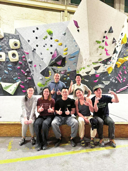 钱小磊(第一排中)和岩友们。受访者供图