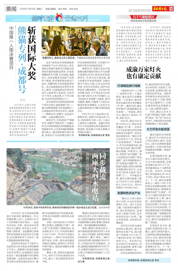 2025年5月上线运营以来,熊猫专列·成都号在途运营151天,组织游客1085人次,六成以上游客为入境游客。这趟专列的开行不仅是旅游定制化服务的有效创新,更是展示中国文旅魅力的国际化窗口。华西都市报-封面新闻记者曹菲