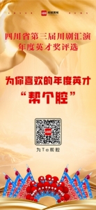 10月27日起,四川省第三届川剧汇演年度英才奖评选正式开启,扫描文末二维码,即可进入活动主页,为你喜欢的年度英才奖候选人“帮腔”助力。