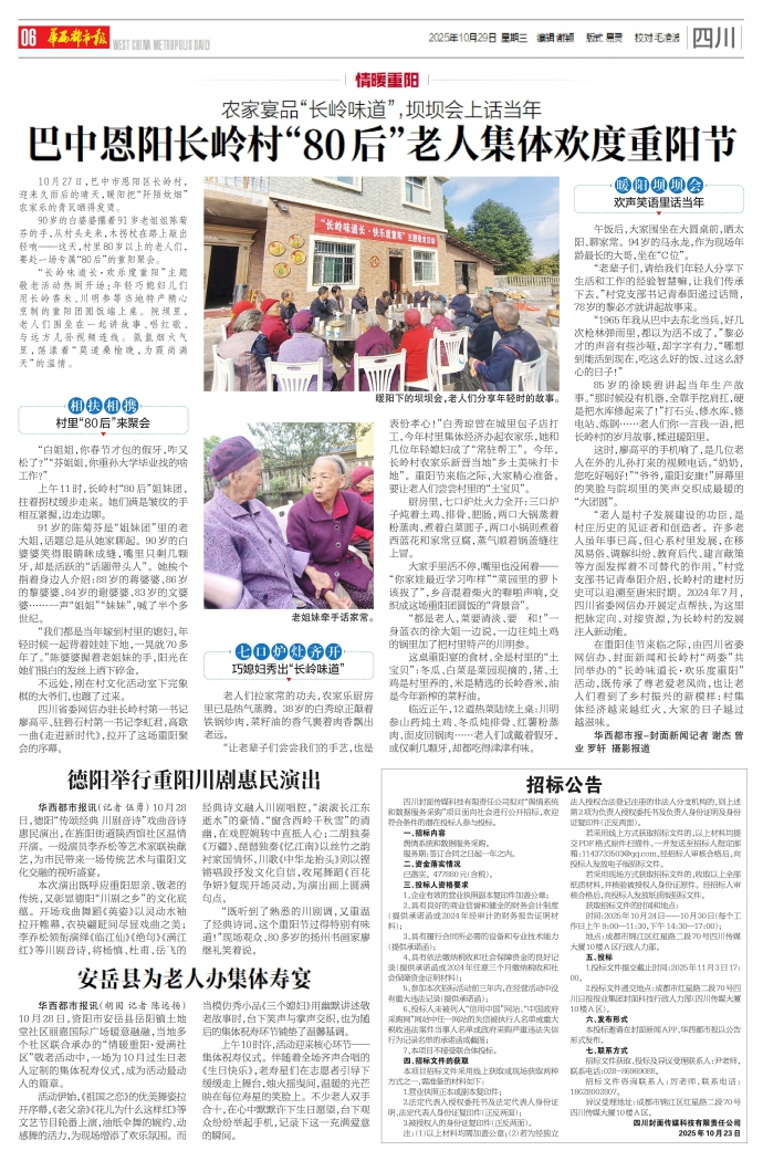 巴中恩阳长岭村“80后”老人集体欢度重阳节
