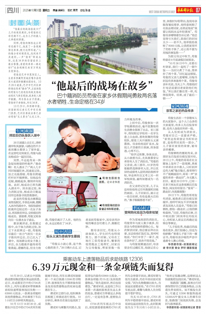 巴中籍消防员苟俊在家乡休假期间勇救两名落水者牺牲,生命定格在34岁