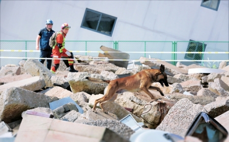 “汪、汪、汪……”近日,在位于成都市金堂县的国家西南区域应急救援中心赛场上,搜救犬“三丰”发出了持续数秒的响亮吠叫,这是它发出的“生命信号”,以便精准地告诉训导员王坤,在这堆废墟下正埋着被困者。