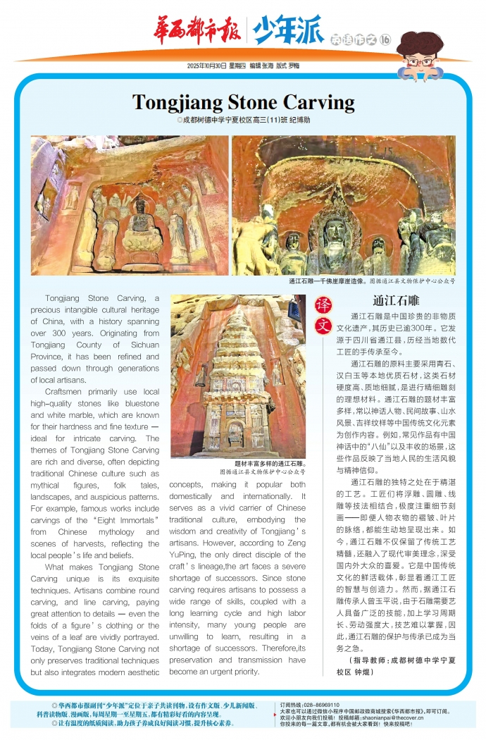 Tongjiang Stone Carving, a precious intangible cultural heritage of China, with a history spanning over 300 years. Originating from Tongjiang County of Sichuan Province, it has been refined and passed down through generations of local artisans.