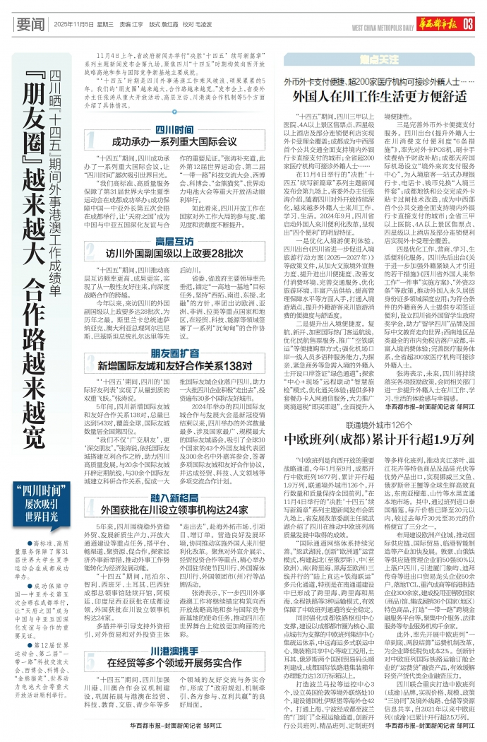 “‘十四五’期间,四川的‘国际好友列表’实现了从量到质的双重飞跃。”张涛说。