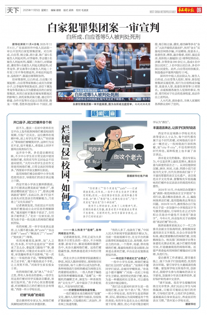 “堵不如疏。现在学生接触的网络文化非常多,我们无法让学生与网络隔离,只能尽可能贴近他们的世界,引导他们思考,让他们学会辨别,逐渐提高自身审美品位,养成良好的语言习惯。”贵州某小学校长说。据新华社