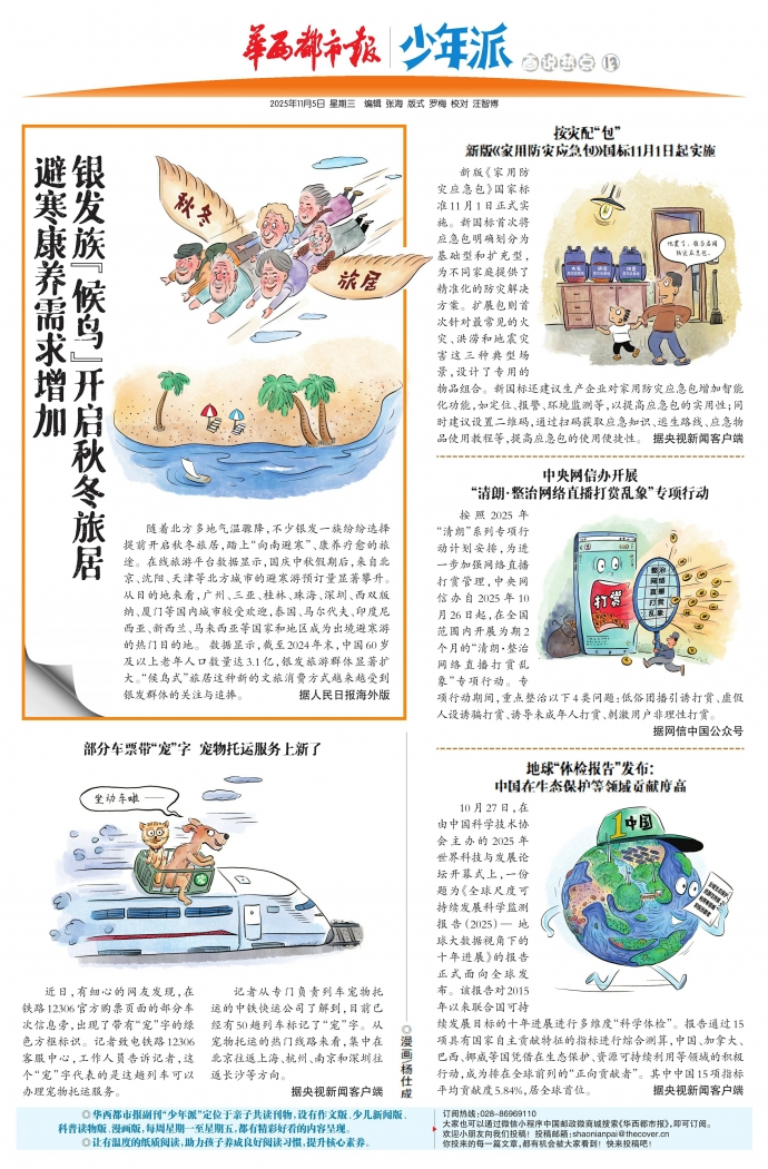 随着北方多地气温骤降,不少银发一族纷纷选择提前开启秋冬旅居,踏上“向南避寒”、康养疗愈的旅途。在线旅游平台数据显示,国庆中秋假期后,来自北京、沈阳、天津等北方城市的避寒游预订量显著攀升。从目的地来看,广州、三亚、桂林、珠海、深圳、西双版纳、厦门等国内城市较受欢迎,泰国、马尔代夫、印度尼西亚、新西兰、马来西亚等国家和地区成为出境避寒游的热门目的地。数据显示,截至2024年末,中国60岁及以上老年人口数量达3.1亿,银发旅游群体显著扩大。“候鸟式”旅居这种新的文旅消费方式越来越受到银发群体的关注与追捧。 据人民日报海外版
