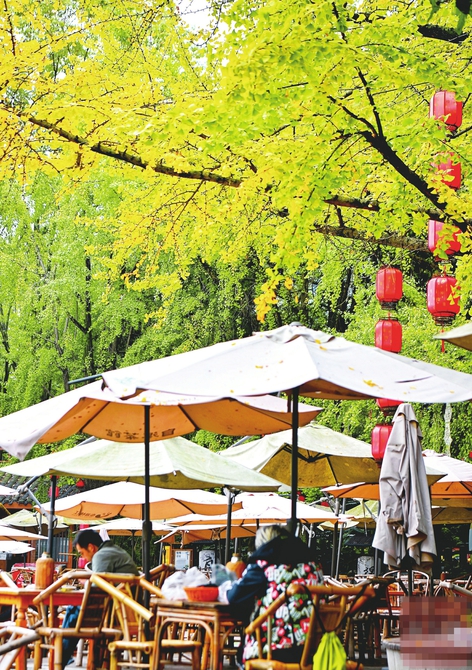 在成都市中心活水公园内,又是另一番静谧景致。临河茶铺旁,数株高大银杏已显现出青黄交织的渐变色彩。茶客们临江而坐,一边品茗一边赏叶,构成老成都特有的秋日闲趣。这座依府南河而建的生态公园,因独特的滨水景观,每年秋天都会成为市民赏景的热门去处。