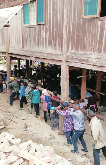 平寨村村委书记吴见兴介绍,这样的互助搬家在当地并不少见。“有条件的、地基旁边有空地的,都可以这样搬。我们这里群众很团结,一方有求,八方支援。”