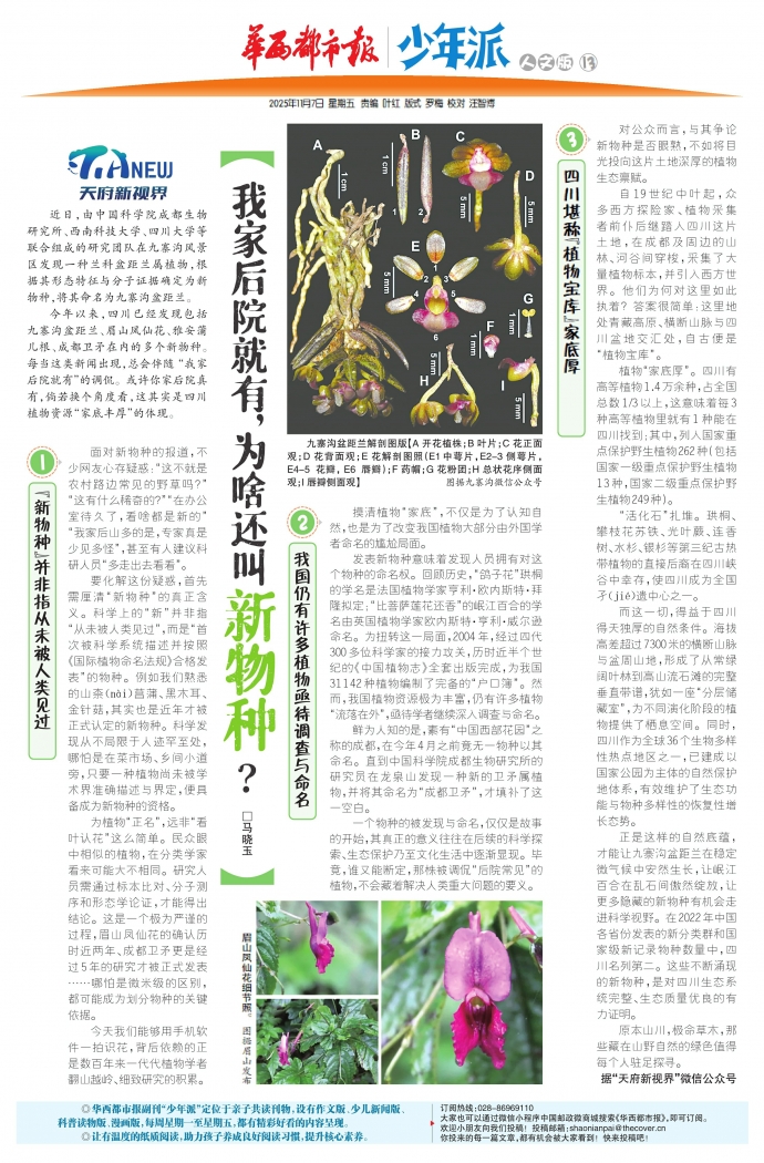 今年以来,四川已经发现包括九寨沟盆距兰、眉山凤仙花、雅安蒲儿根、成都卫矛在内的多个新物种。每当这类新闻出现,总会伴随“我家后院就有”的调侃。或许你家后院真有,倘若换个角度看,这其实是四川植物资源“家底丰厚”的体现。