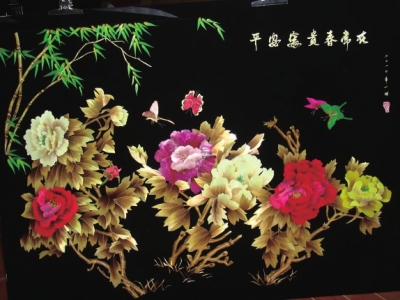 蓬溪麦秆画通过层叠、镂空等技法,将普通的荞麦秆化作山水、动物、人物,并闪耀出宛如阳光般的金色光泽。
