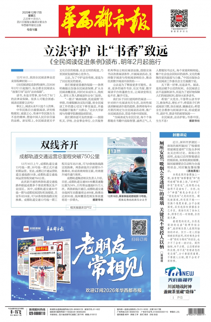 《全民阅读促进条例》颁布,自2026年2月1日起施行,标志着全民阅读从“政策引导”迈向“法治保障”。