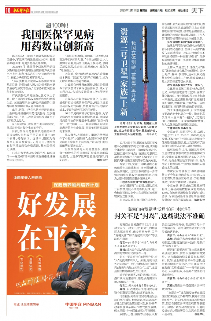 立体测绘星座再升级。专家介绍,资源三号01星、02星、03星于2012年、2016年、2020年先后发射,不仅打破了外国卫星对高精度立体测绘的数据垄断,也让我国拥有了独立自主可控的高质量卫星测绘数据。