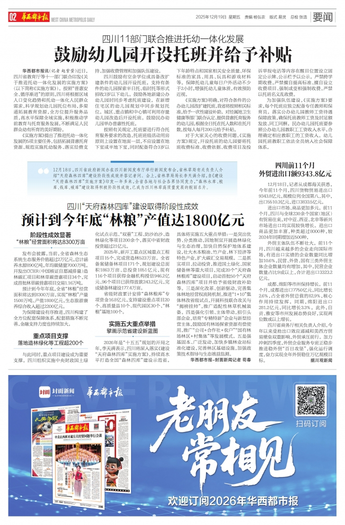 12月18日,记者从成都海关获悉,今年前11个月,四川货物贸易进出口9343.8亿元,规模位列全国第八,其中,出口5510.3亿元,进口3833.5亿元。