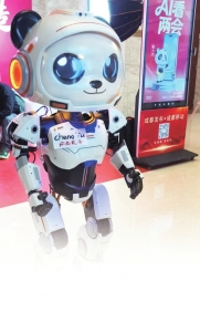 能说四川话的熊猫人形机器人“锦宝”亮相成都市两会。