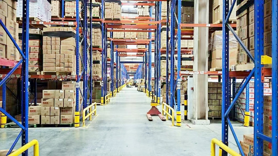 物流平台大仓中堆放的年货。受访企业供图