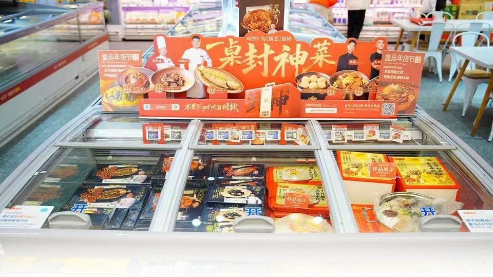 今年,综艺《一饭封神》在荧幕上再掀美食热潮。记者在盒马鲜生看到,烧椒鲈鱼、永春白鸭炖午鱼狮子球等综艺中多位主厨的拿手菜同款套餐已悄然登上货架。据了解,该系列自上线以来,销售同比增长116%,其中香辣蟹、烧椒鲈鱼最受欢迎,吸引不少消费者下单试菜。