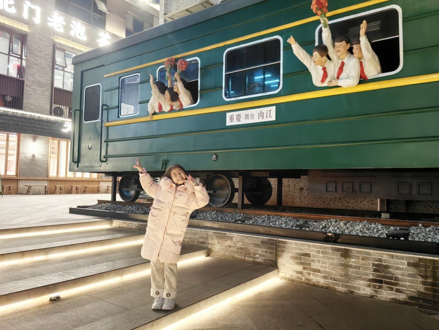 1月23日,离乡数十载的周奶奶在儿子的陪伴下,从重庆回到内江,特意到“四方块”转悠。看着新建的楼房和新开的店铺,她嘴里呢喃着:“变了,变了。”当看到“重庆开往内江”绿皮火车、复原邮局信箱的雕塑时,她又像被拉回到了从前,脸上露出了开心的笑容。