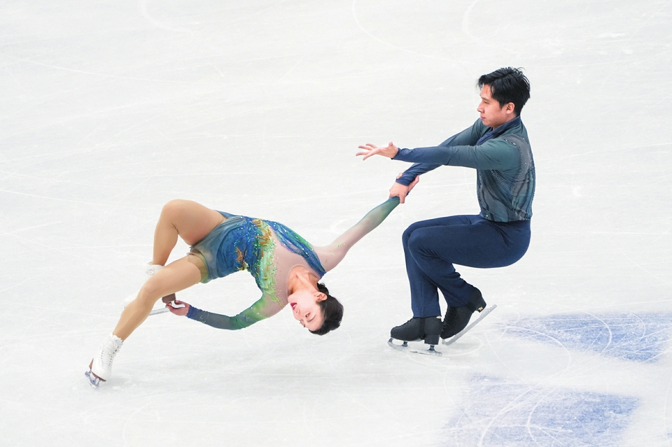 1月24日,在2026年国际滑联四大洲花样滑冰锦标赛双人滑自由滑比赛中,中国组合隋文静(左)/韩聪获得亚军。新华社发