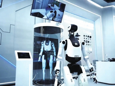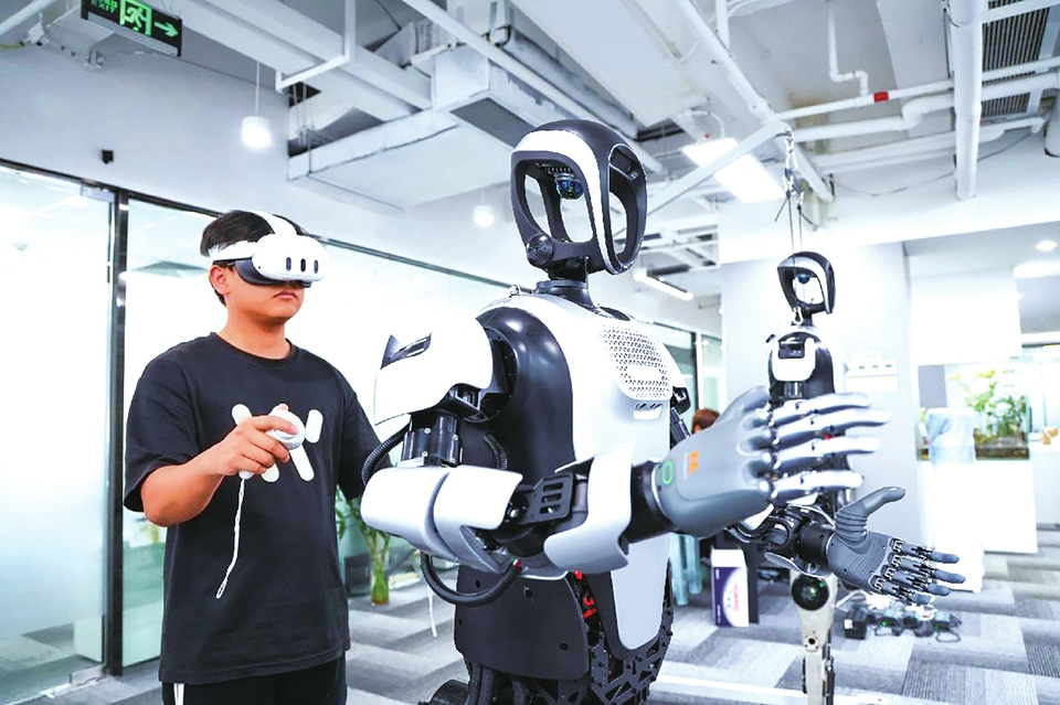 在深圳一家机器人企业,技术人员在调试人形机器人。