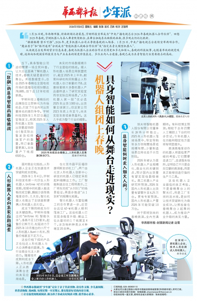 这些机器人企业面临的真正考验,不是春晚舞台上的聚光灯,而是工厂车间的流水线,是如何让技术突破转化为商业成功,让那些曾在春晚舞台上起舞的机器人,成为推动产业升级的真实力量。华西都市报-封面新闻记者边雪