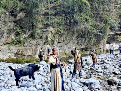 这是巴山大峡谷景区今年春节假期创新推出的巴国猎人沉浸式体验活动,游客在猎人NPC的带领下围猎野猪,围猎过程中还能赢得红包、纪念品。