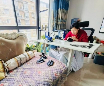 “以前在厦门打工,顾不上家里的老人和孩子。现在在家做伞套,在自家客厅里就可以工作。缝纫机由工坊提供,维修有人上门,多劳多得。”长赤镇居民汪玉梅坐在家里,踩着电动缝纫机忙碌着。