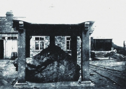 20世纪初,在旅顺原址的唐鸿胪井碑及碑亭。