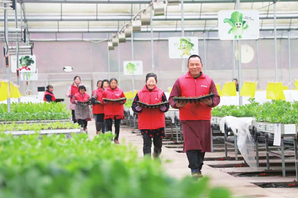 遂宁安居区聚贤镇和平村的智慧大棚内,村民们正开展瓜果蔬菜育苗作业。 张勤宝摄