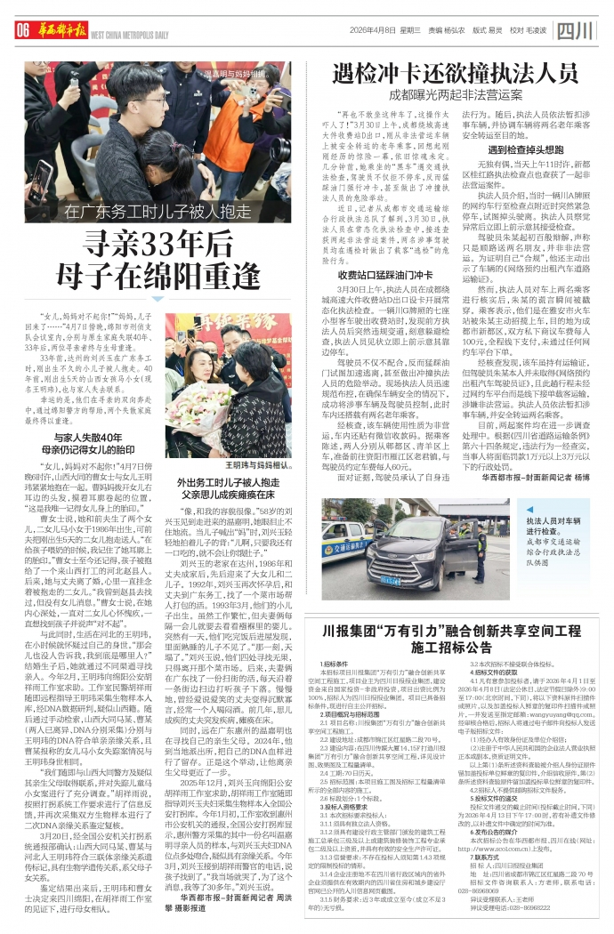 寻亲33年后 母子在绵阳重逢