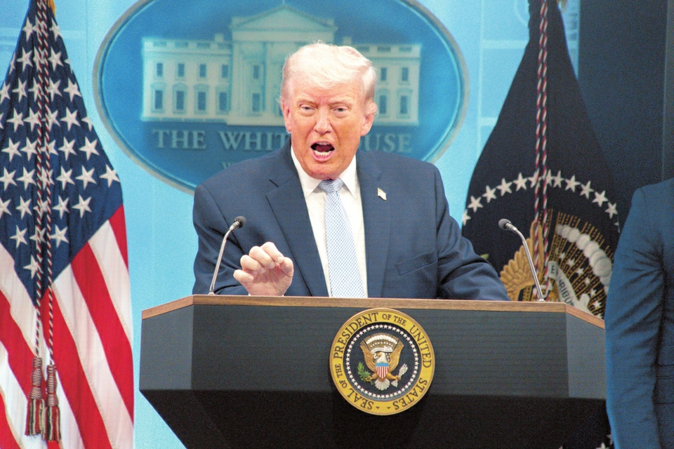 4月6日,美国总统特朗普在首都华盛顿白宫举行的新闻发布会上讲话。 新华社发
