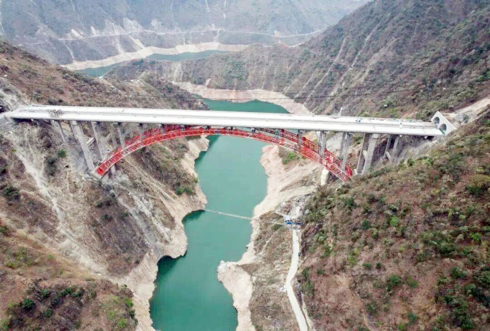 约乌拉达特大桥位于凉山州雷波县,为主跨280米的上承式钢管拱桥,全长404米,衔接西苏角2号、3号隧道,是宜攀高速新金段重点攻坚工程。