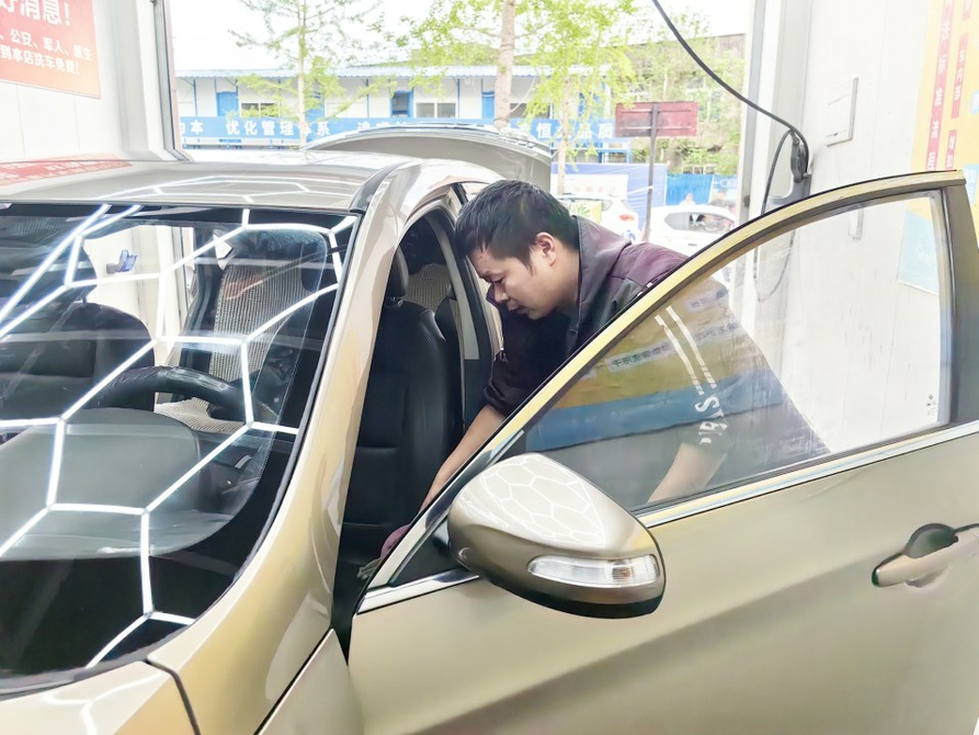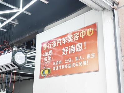 2024年,周超在东兴区开了这家洗车店,开业当天便贴出了免费洗车告示,消防、公安、军人、医生凭证件到店洗车,每月免费1次。