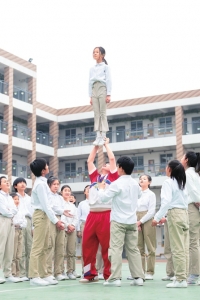 “我第一次拍片的时候学校也不知道,我也没给学校说。”接下啦啦操比赛任务的时候,马超群刚进学校两年,除了常规的教学任务,他想做的,是突破现在的操课模式,带着孩子们找到更有趣的锻炼方法。