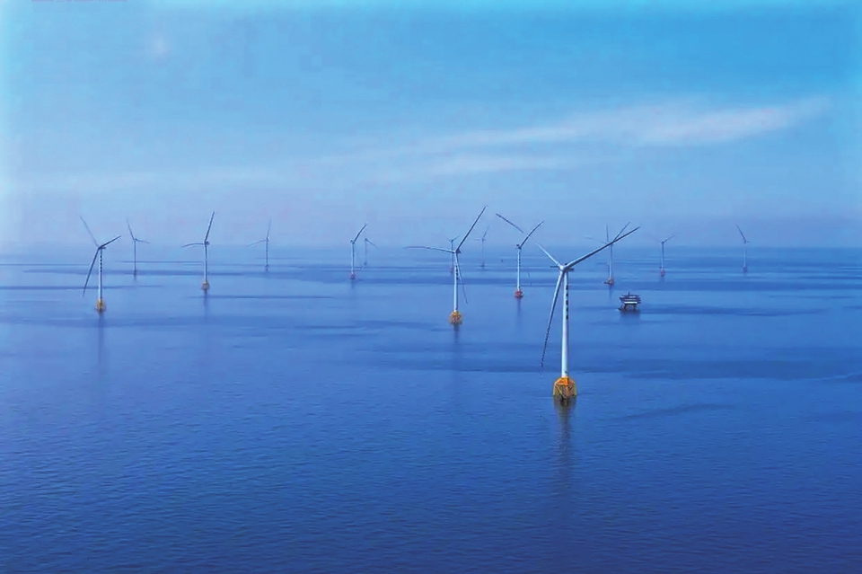 位于黄海北部的山东半岛北海上风电项目。图据人民日报客户端