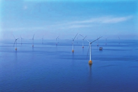 这个项目总装机50.4万千瓦,安装42台12兆瓦风力发电机组,场址中心离岸约70公里,水深52至56米,为我国水深最深的商运海上风电项目,年发电量约17亿千瓦时,每年可节约标准煤约50万吨。