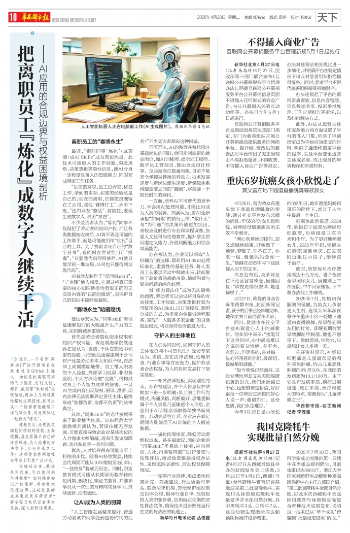 ——完善行业自律,形成柔性约束补充。刘溪建议,行业协会可牵头,联合法律机构、劳动保护组织制定自律公约,倡导行业自律,抵制贬损人类职业价值、加剧就业失衡的恶性算法竞争,确保技术进步始终运行在文明与法治的轨道上。